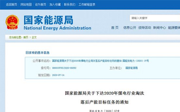 國家能源局關于下達2020年煤電行業淘汰落后產能目標任務的通知