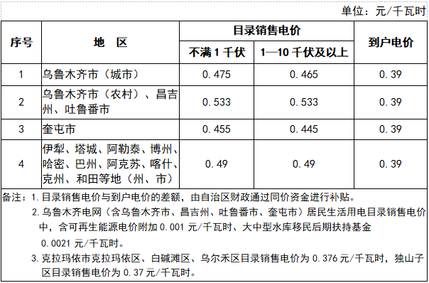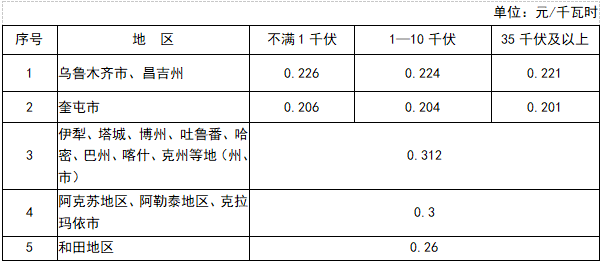 附件:新疆電網居民生活、農業生產用電目錄銷售電價表