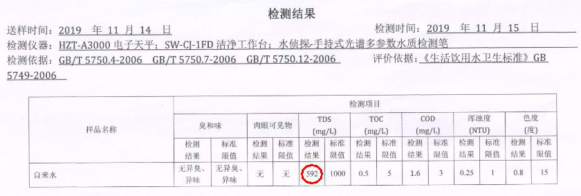 我司對喀什的自來水抽樣檢測,初步檢測結果如下: