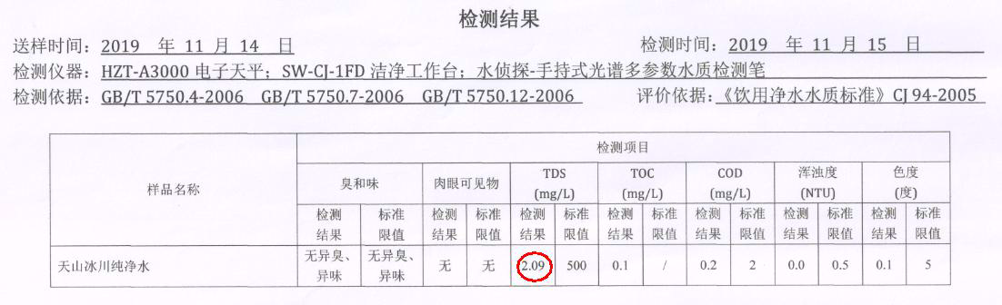 喀什自來水經過凈化的純凈水檢測結果如下: